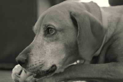 Not until a few weeks ago did I have any idea what breed Amos' was. Then someone tipped me off that he may be a coon-hound. I did a little research and sure enough, Amos seems to be a Redbone Coonhound. From the description of coat, personality, instincts and temperament Amos seems to be a Redbone through and through.