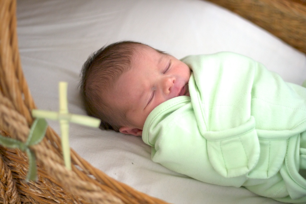 When we came home from the hospital we started to identify those elements of our homecoming that were going to be crucial to our first day's survival. One of those is the Moses basket we've been handed down through Robin's side of the family. At some point during that first day I noticed a little cross folded from a palm leaf stuck in the basket. It was a symbol of Palm Sunday - the day of Hattie's birth. Our friends Steve and Chelsi, who have been a rock for us in these days, had come to the house to pick up Amos for the week, and Steve placed the palm cross on the basket. Here's Hattie with Steve and Chelsi. When I think about Steve and Chelsi, as well as all the other people around us here in Charlottesville I recall that it "takes a village to raise a child." And our village is so beautiful!